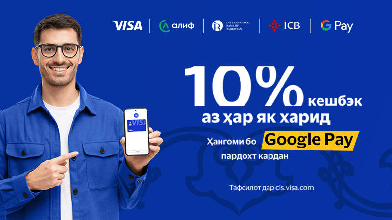 Пешниҳоди махсус: бо корти Visa тавассути Google Pay пардохт намоед ва ба корти худ 10% кешбэк гиред!